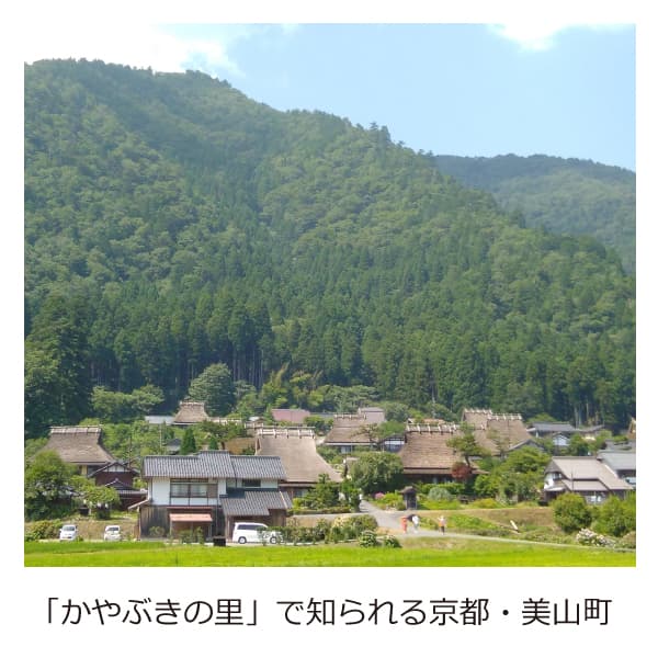京都市の中心部から車で1時間余り。かやぶき民家が多くのこる「かやぶきの里」で知られる京都・美山町は、西日本屈指の天然林が広がる芦生原生林や、清流・由良川などの豊かな自然に恵まれた地域。国の重要伝統的建造物群保存地区にも選定されています。
