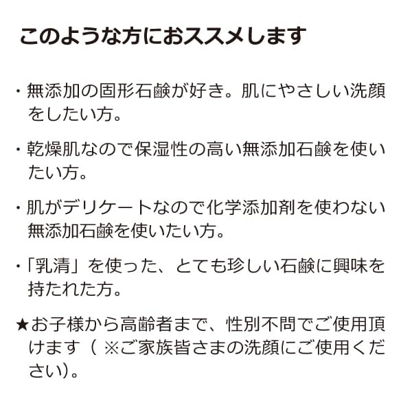 - ● 「乳清」を使った、とても珍しい石鹸に興味を持たれた方。