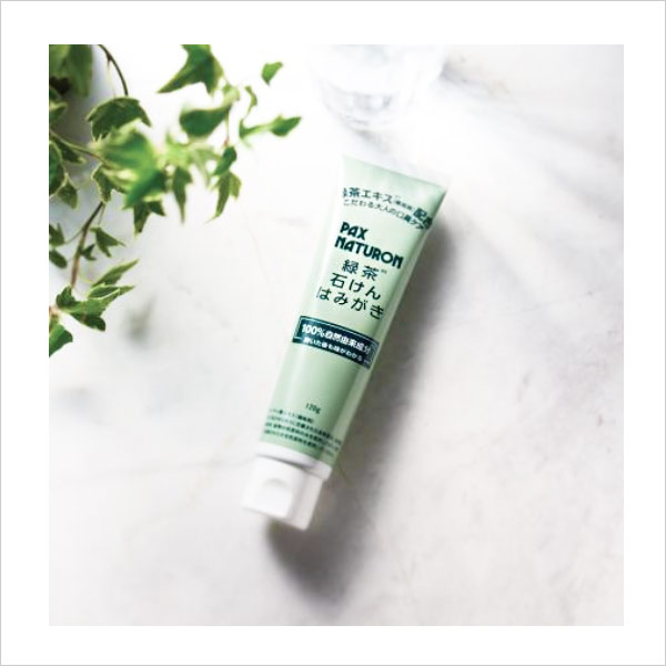 パックスナチュロン緑茶石けんはみがきは、緑茶エキスを配合した無添加石けん歯磨き。虫歯・口臭を防ぎ、歯垢を除去します。