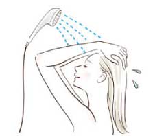 すすぎは、洗浄成分を頭皮に残さないように、軽く頭皮マッサージをしながら行ってください。
