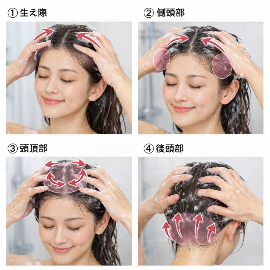 頭皮マッサージは最低1分以上、念入りに行ってください。