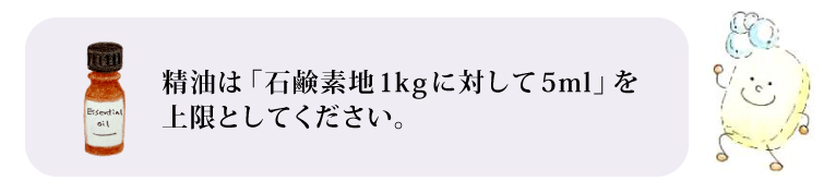 ◎精油は「石鹸素地1kgに対して5ml」を上限としてください。
