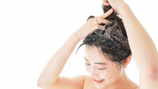 石鹸カスを減らすために、髪・頭皮をよくすすぐことが大切。髪だけではなく、頭皮の付着物も除去する必要があるため、1分以上しっかり洗い流してください。